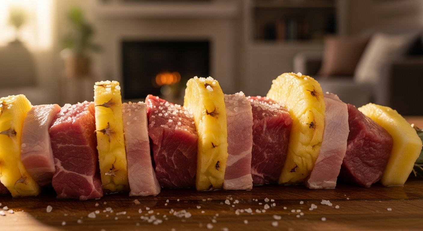 브로멜라인은 주로 파인애플, 그중에서도 특히 질긴 심지 부분에서 추출하는 식물 유래의 강력한 단백질 분해 효소입니다. 천연 소화 효소로 잘 알려져 있으며, 고기의 단백질 결합 구조를 잘게 쪼개어 부드럽게 만드는 연육 작용을 합니다. 요리할 때 고기를 재우는 용도로 파인애플을 사용하는 것도 바로 이 브로멜라인의 성질을 활용한 지혜입니다.